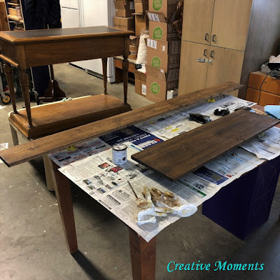 I chose Homestead House's cappuccino stain and oil for the tub trays and ruler. Each piece had two coats on the fronts and back for a nicely sealed rich stained piece. I lightly sand after each coat to give it a satin smooth feel. This amazing stain finishing oil has a built in top coat which saves steps doing it all at once. It is so easy to use and such a fabulous product.