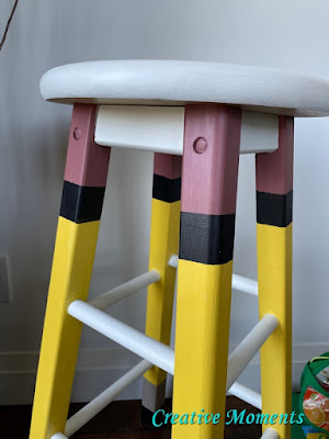 A good customer who is a school teacher asked if I could make an old stool into a fun one of a kind piece for her classroom. I took up the challenge to create this cutie.