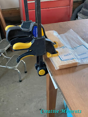 The table corners on one side had cracks that were filled again with the offset spatula then clamped from all sides to keep straight. I use plastic between these clamps and wood as the rubber leaves marks.