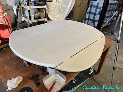 The table top complete. You can see the watered down paint still allows the wood grain to show thru nicely.